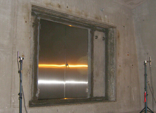 耐熱性…EB(20分耐火)、EA(60分耐火) - ■建材試験センターにて試験中の当社サッシ