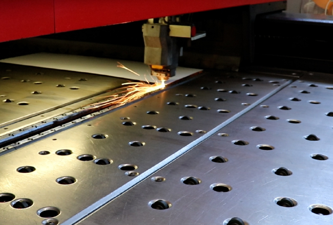 ④レーザー加工 曲げ前に必要な穴開け、切欠きをします。 -